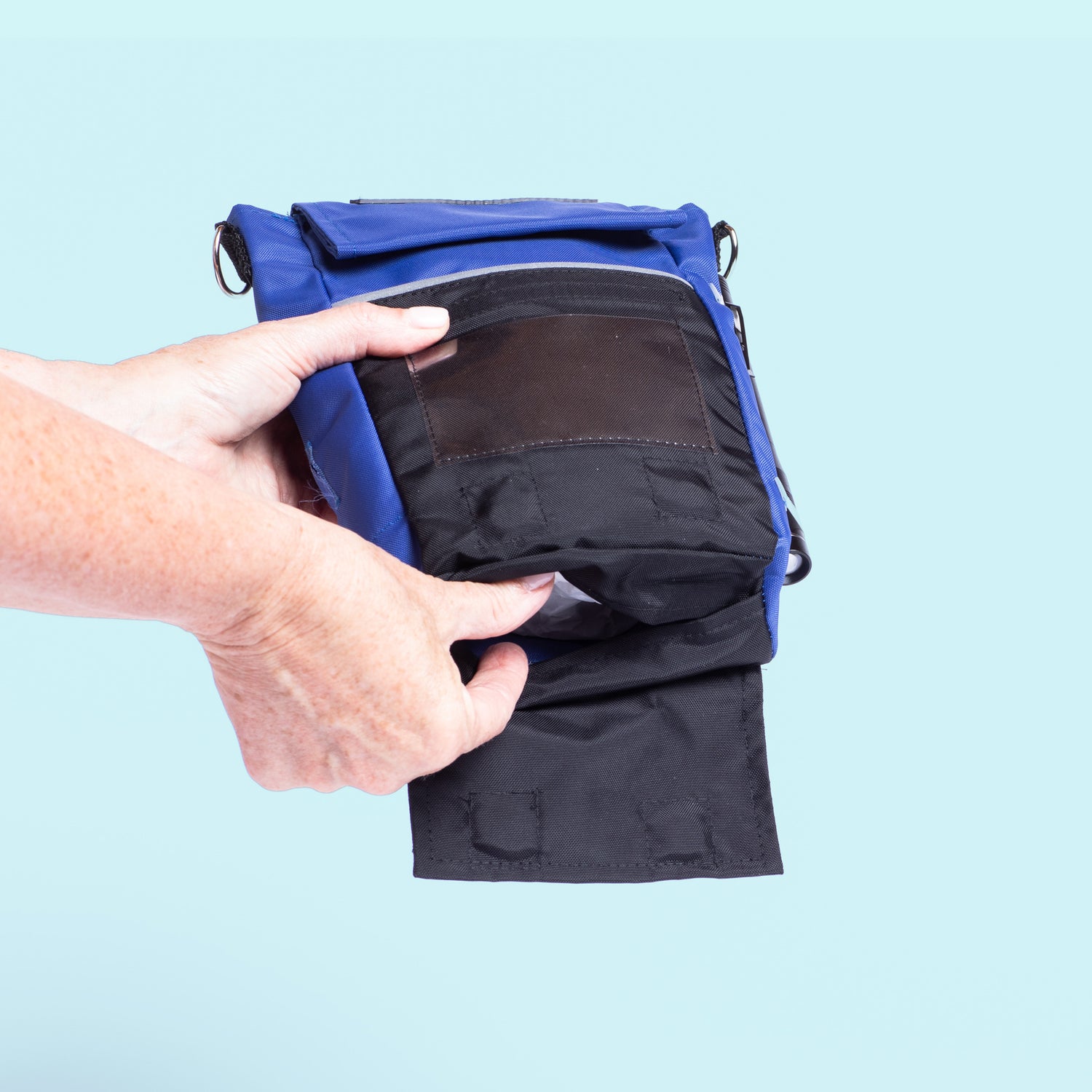 • Roomy main compartment has space for up to 2 lbs of waste filled bags